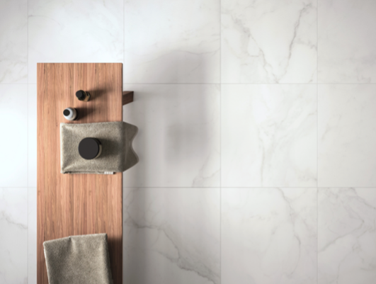 Porcelain marble effect tiles with a rectified edge available in both gloss and matt finishes. Suitable for use on both wall and floor.