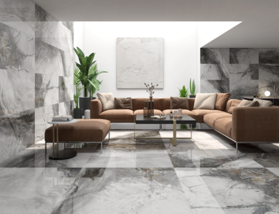 This range of large format porcelain tiles features a highly polished surface. Featuring a rich veining and blend of earthy hues found in natural marble stone. Suitable for for wall and floor.