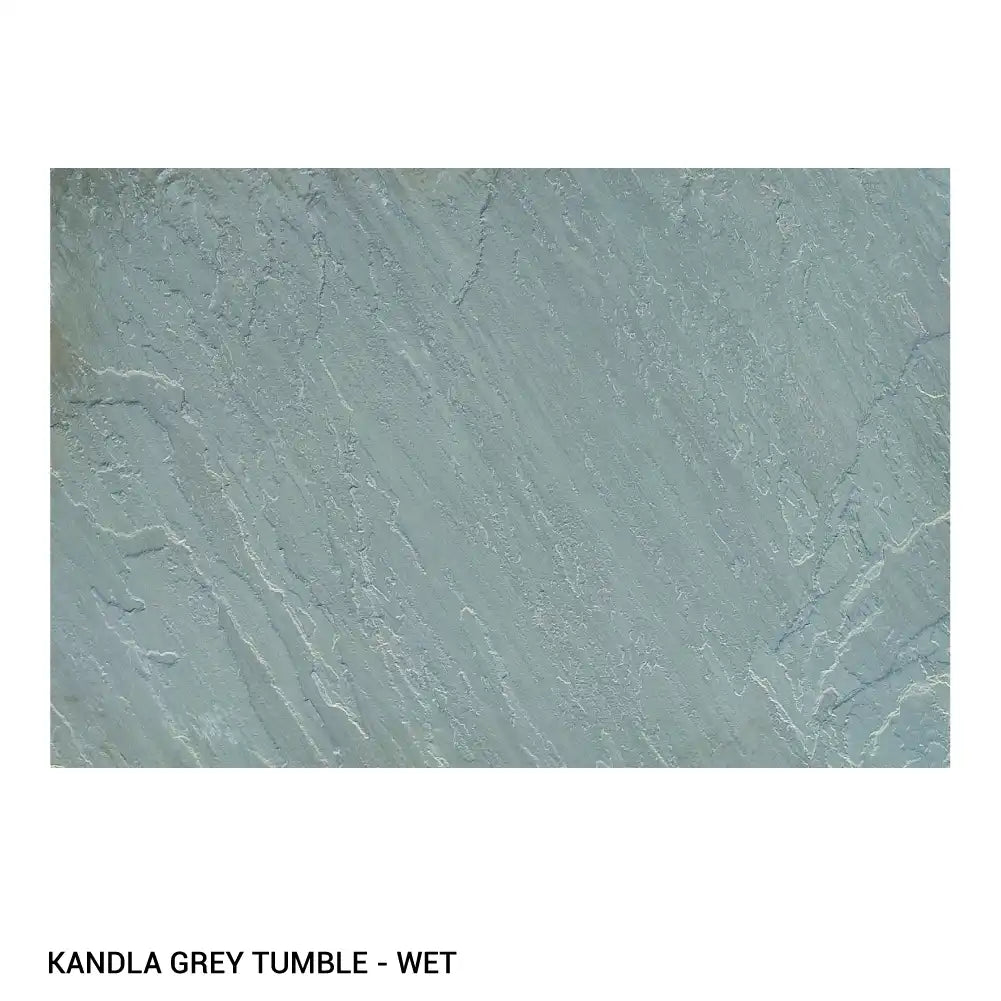 - Description: Kandla Gray Tumbles Sandstone is extremely hard sandstone because of the quartz grains being cemented together with silica and calcite. The sandstone is consistent in terms of its grey colours and tumbled edges. This hard-wearing, polished, durable, minimal maintenance, and excellent weather-resistant paving stone are affordable.