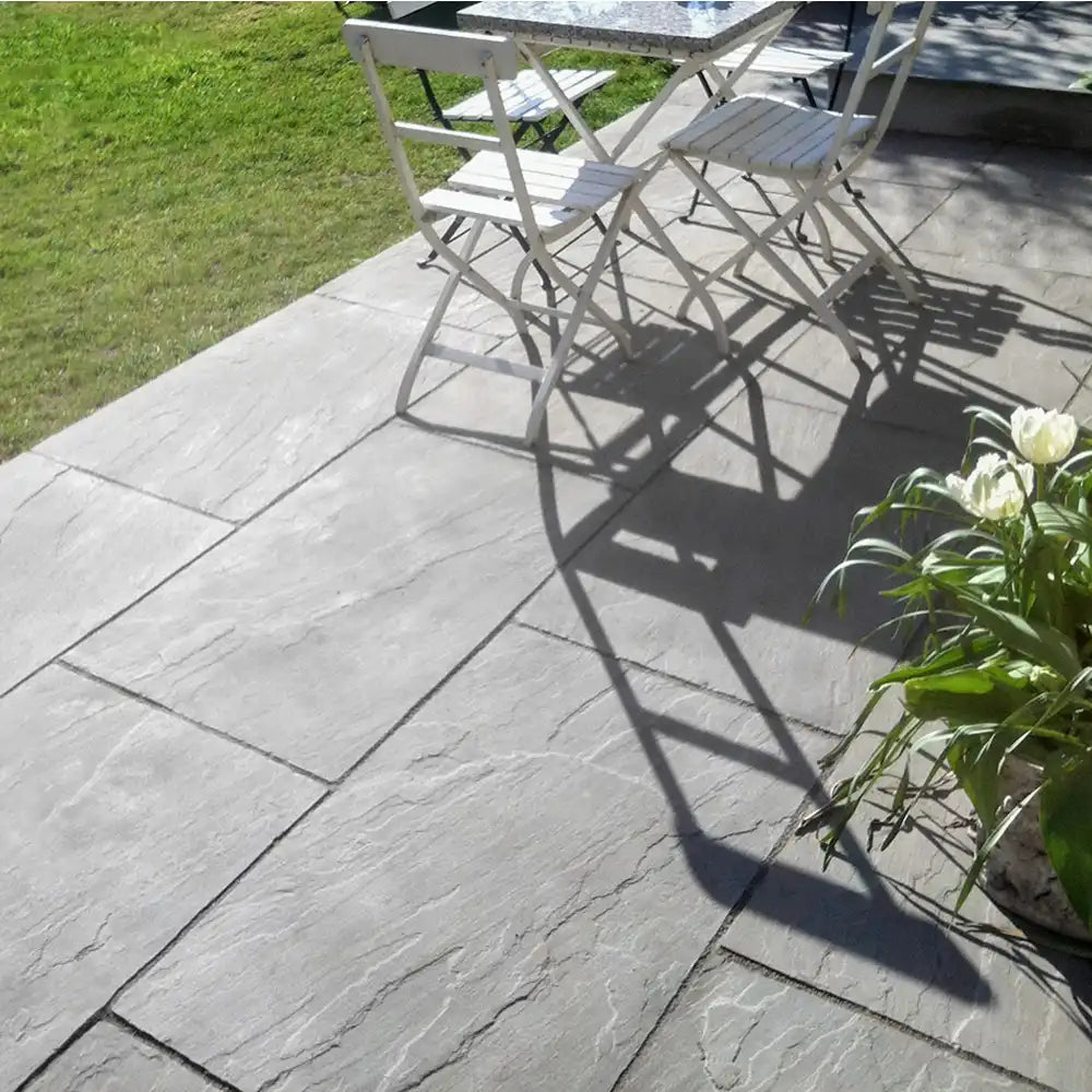 We are one of the leading importer and supplier of the finest quality Kandla grey sandstone slabs in the UK. All our stone slabs are hand-picked from reliable manufacturers and suppliers in India to ensure the best product delivery to our customers. Kandla grey sandstone is a natural stone paving that is unique, hard-wearing, and durable. This stone blends well with any colour theme and ages well with time. It is a strong stone that seamlessly withstands harsh weather conditions.