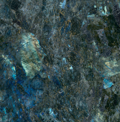Highly polished large format tiles with detailed layers of iridescent blue and green replicating the schiller effect seen in the natural semi-precious stone they are designed to imitate.