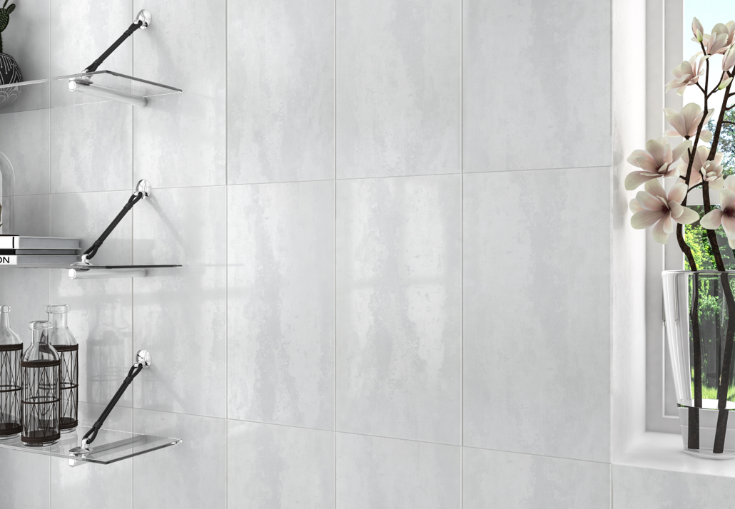 White ceramic tiles featuring a stone effect with a lustre design and smooth rocker finish. These tiles are suitable for use on any internal wall.