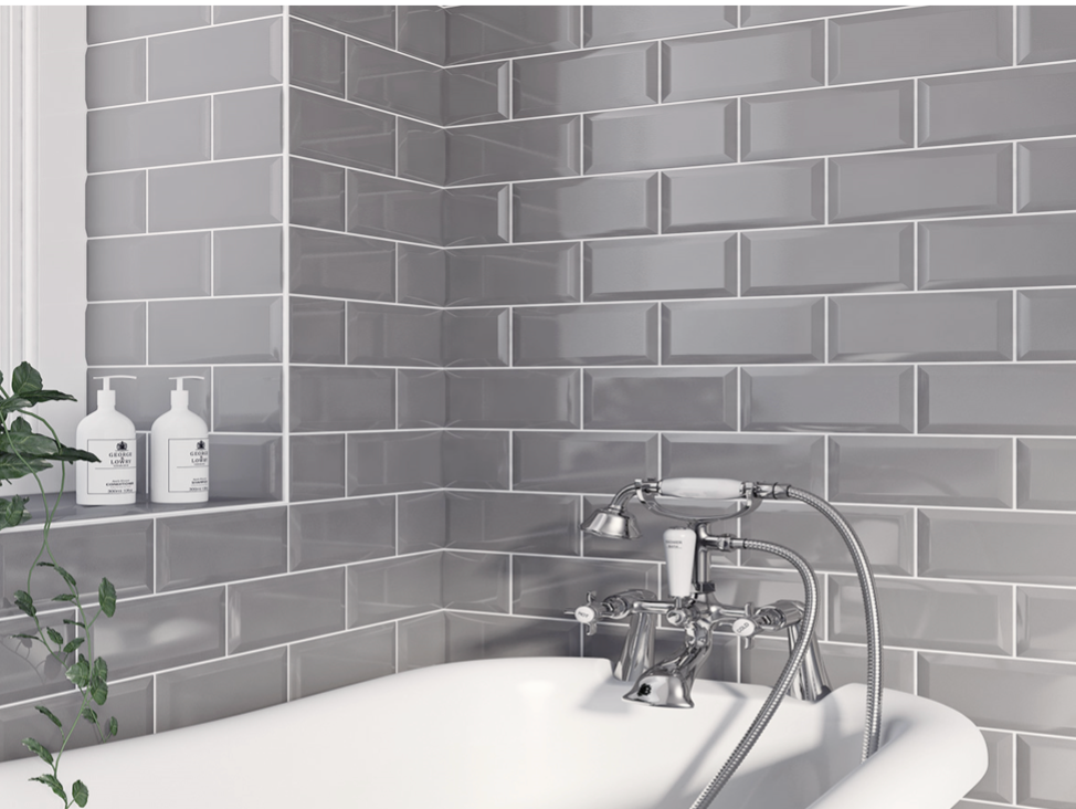 Bevelled edge Grey gloss ceramic wall tiles available in 2 sizes